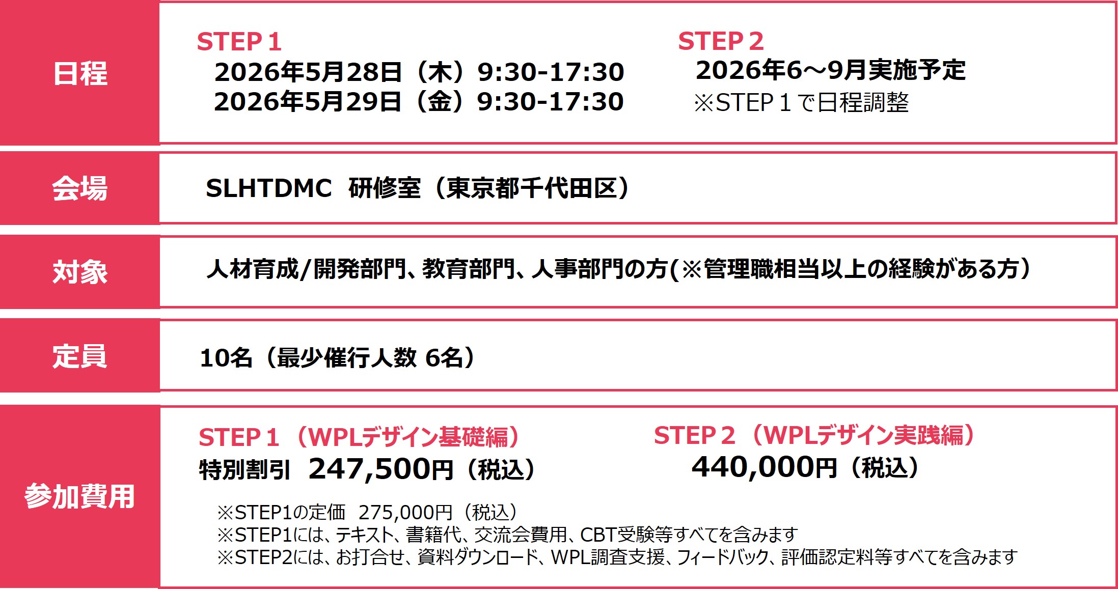 「WPL/ワークプレイスラーニング」の仕組みを、貴社で実践できるようになるためのプログラムです。